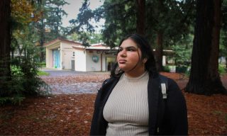 Namrata on the Sacramento State campus on Nov. 14, 2025. Namrata is an international student from India studying political science at Sacramento State. She uses the singular name Namrata as her legal name. (Aliza Imran/CalMatters)